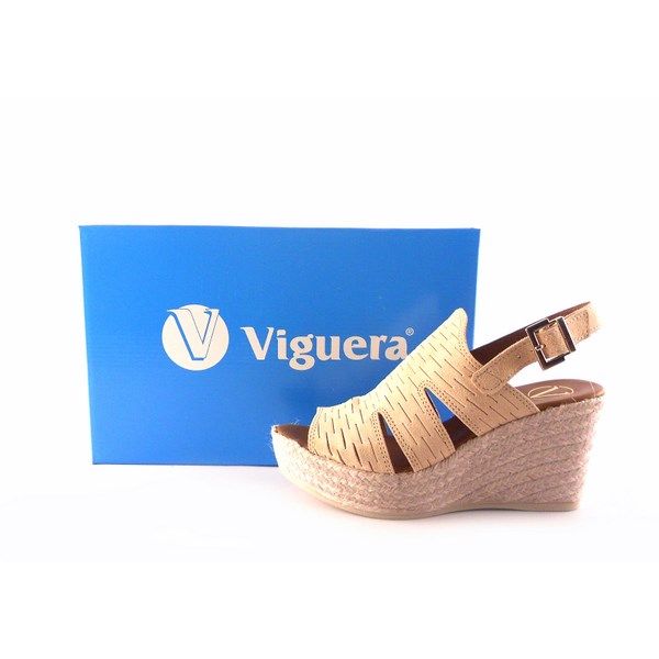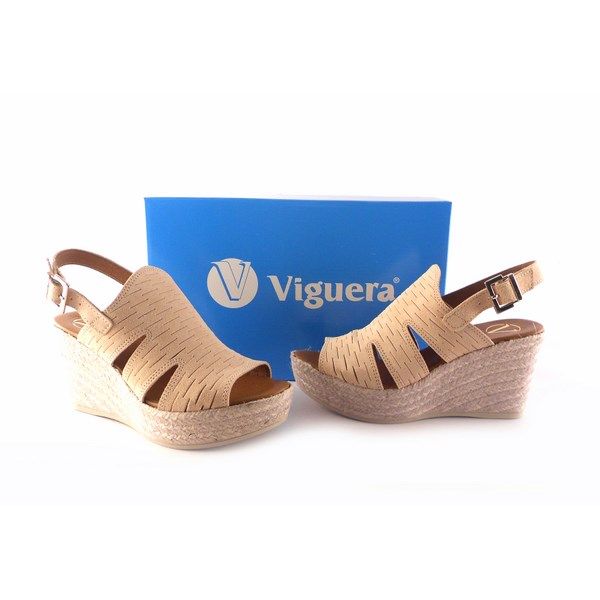 Alpargatas para mujer de la colección de Viguera. Sandalias de cuña de yute esparto de 8,5 cm con piso de 3,5. Planta acolchada en piel. Suela engomada antideslizante. Material: piel vacuno antelina suave y adaptable.