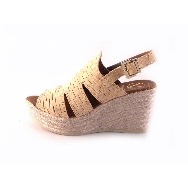 Alpargatas mujer VIGUERA de cuña esparto media color nude.