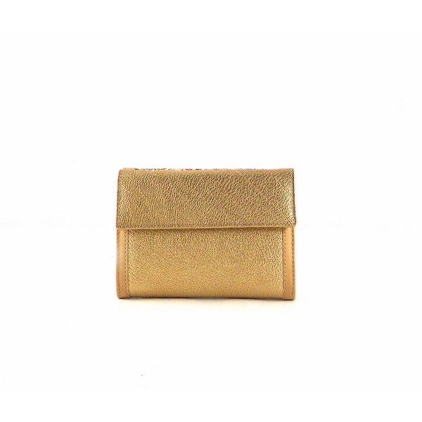Billetera de mujer pequeña con solapa en piel en oro glitter con serpiente print.
