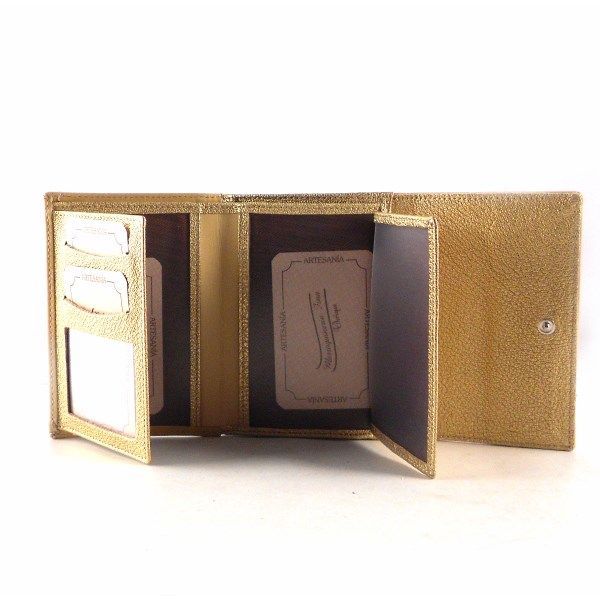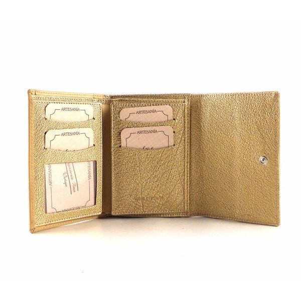Billetera de mujer de tamaño pequeño con solapa media de la colección de Nilo. Piel vacuno natural hidratada y flexible. Monedero doble. Billetero con 6 tarjeteros y 4 fundas transparentes.