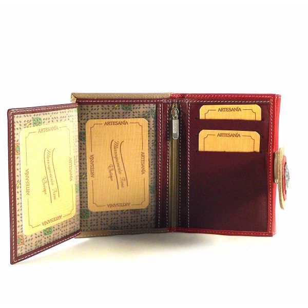 Billetera de mujer tamaño pequeño en piel combinada.