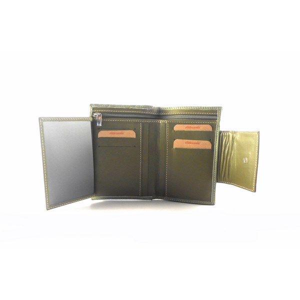 Cartera de mujer de tamaño pequeño de la colección de Nilo. Billetera con 9 ranuras para tarjetas, 1 funda transparente y billetero doble, uno de ellos con cierre de cremallera. Monedero doble separado por bolsillo con cremallera central. Piel vacuno natural hidratada, suave y flexible.
