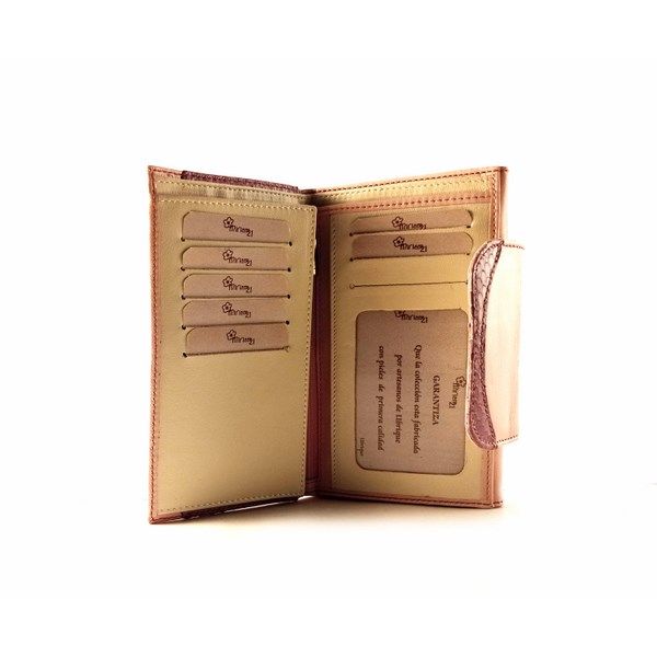 Billetero para mujer de tamaño mediano de la colección de Marroquinería Nilo. Billetero con 8 ranuras para tarjetas, cremallera central interior, dos fundas transparentes y billetero doble. Monedero trasero con doble compartimento separado por bolsillo con cremallera. Piel vacuno netural hidratada, suave y flexible.