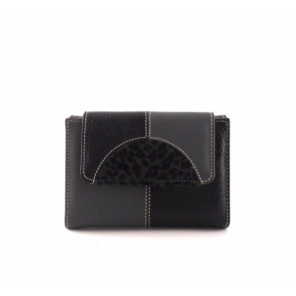 Cartera para mujer de tamaño pequeño de la colección de Nilo. Cartera con monedero doble separado por cremallera. Billetero con 6 ranuras para tarjetas y 4 espacios de fundas. Material: piel vacuno natural hidratada y flexible con detalle de pelo en la solapa.