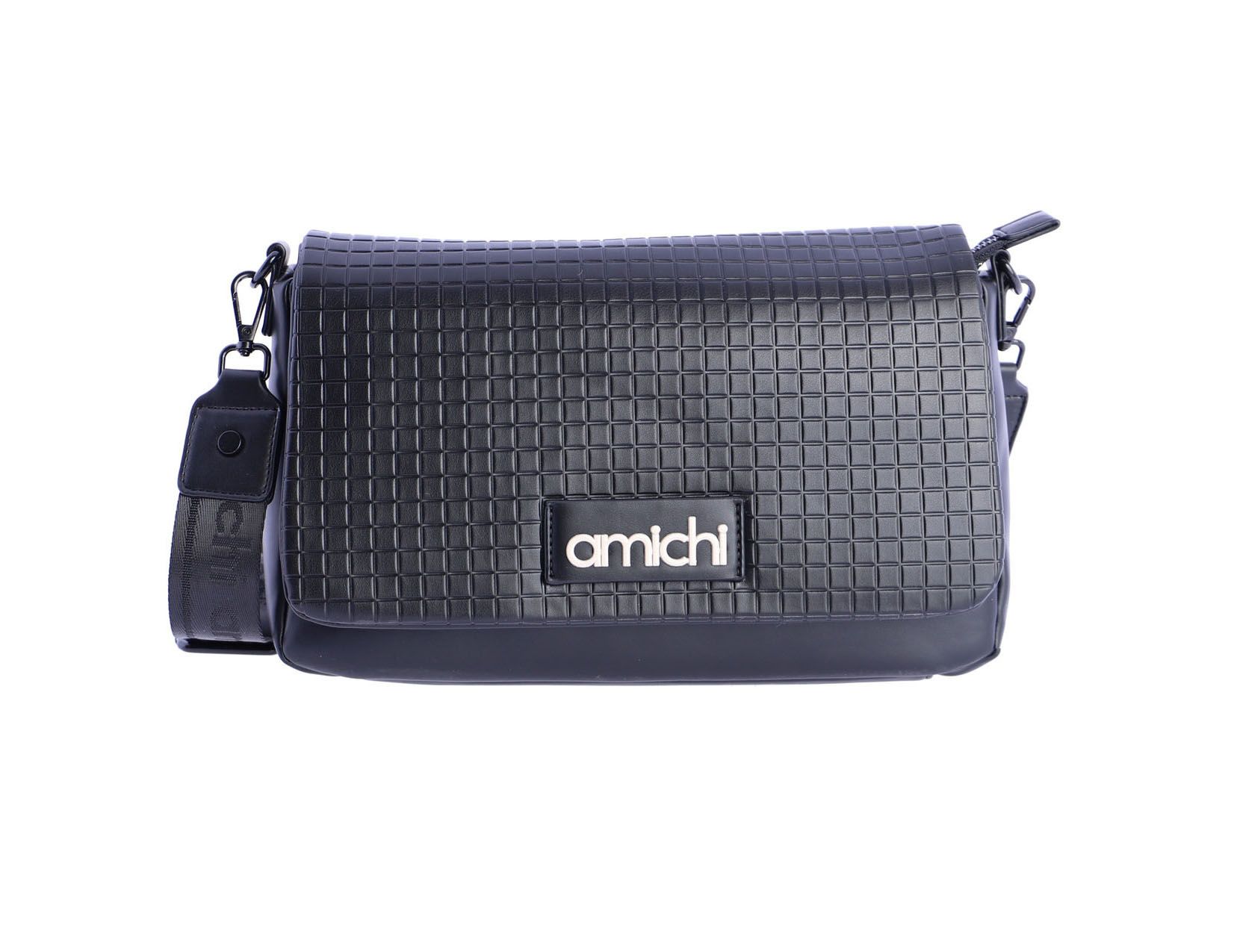 Bolso estilo bandolera de la colección de AMICHI con asa bandolera ajustable y desmontable. Modelo con solapa y cierre principal con cremallera. Bolsillo cerrado con cremallera en la parte de detrás y detalle del nombre de la marca en la cara delantera . Bolsillos en el interior, uno de ellos cerrado con cremallera.