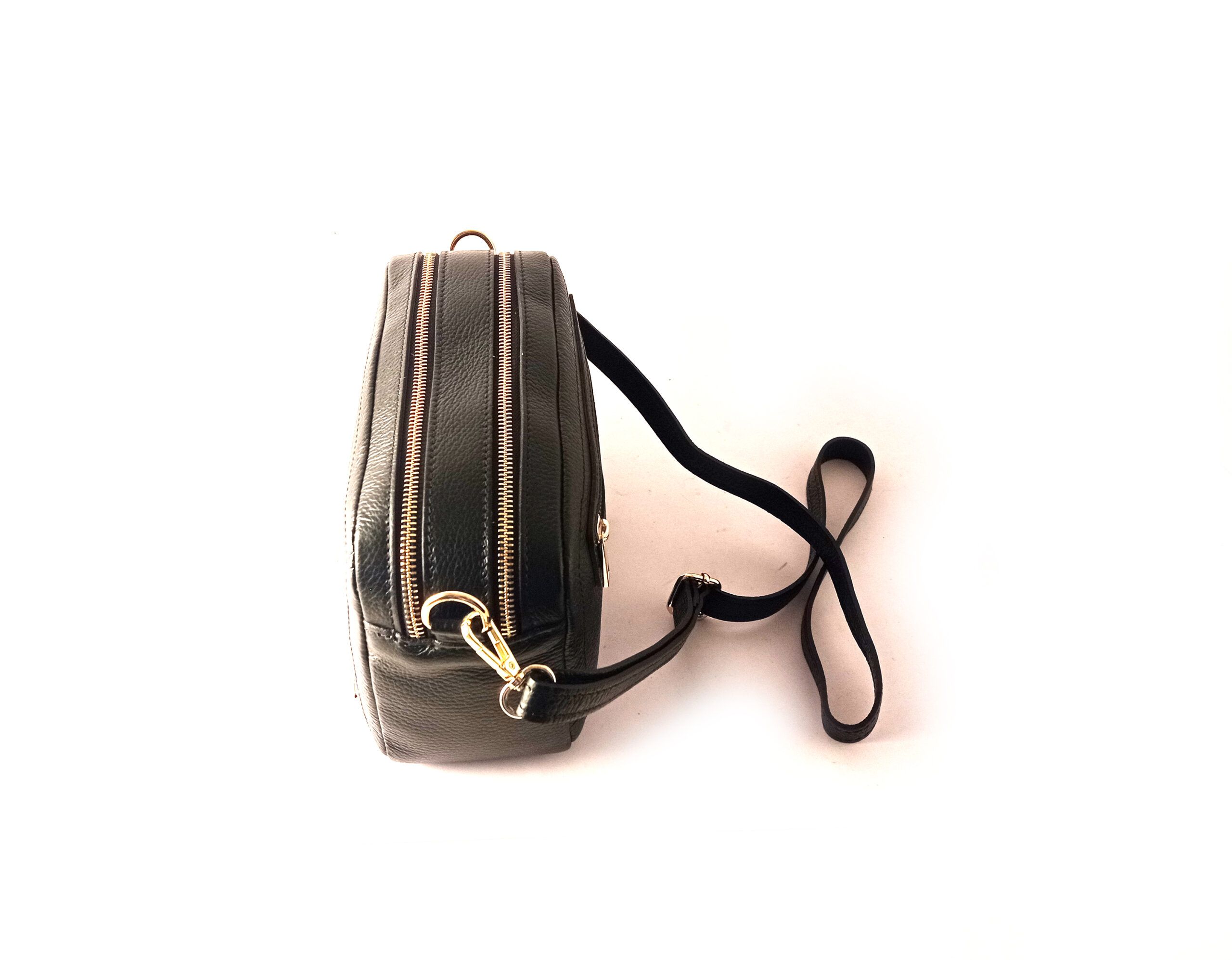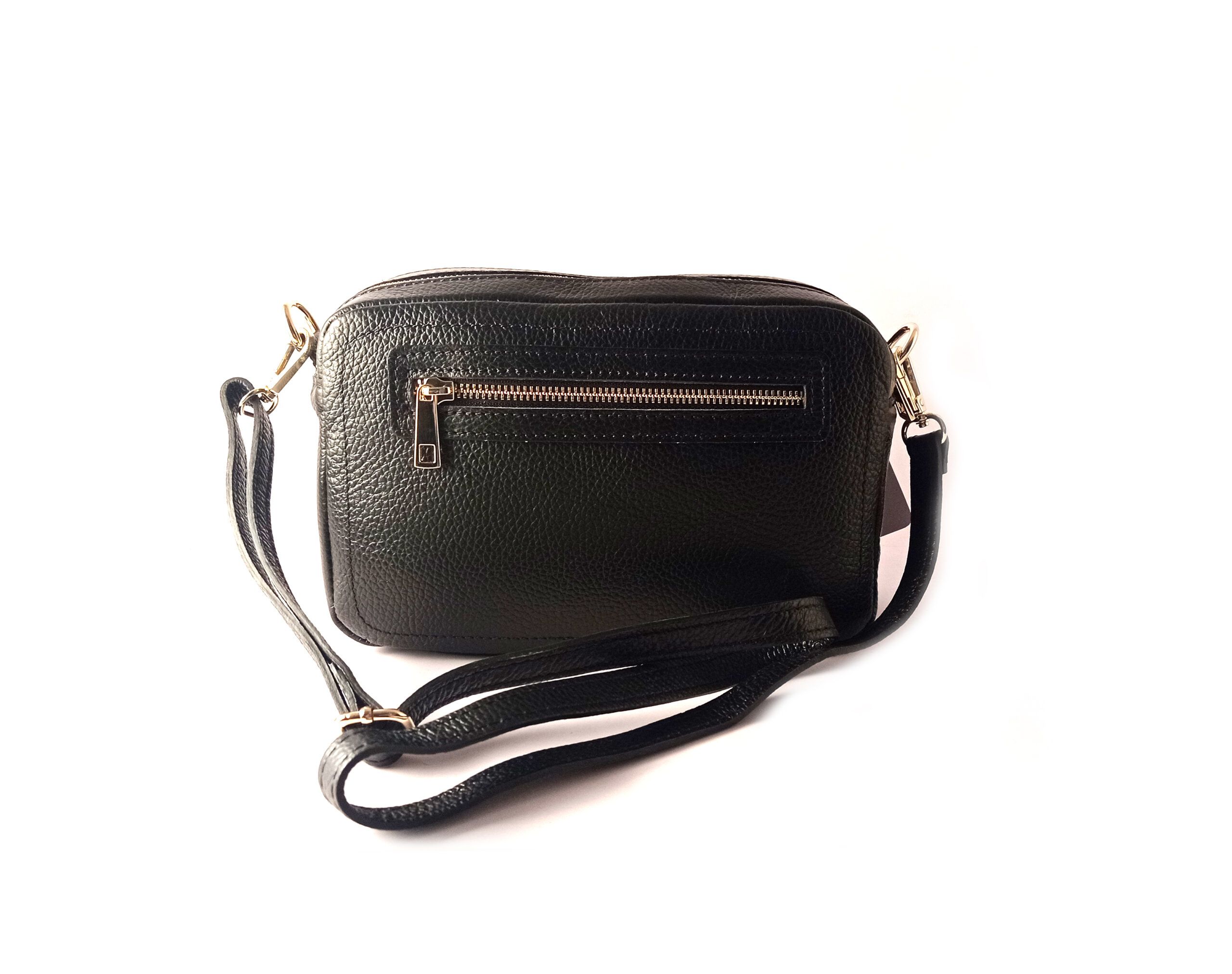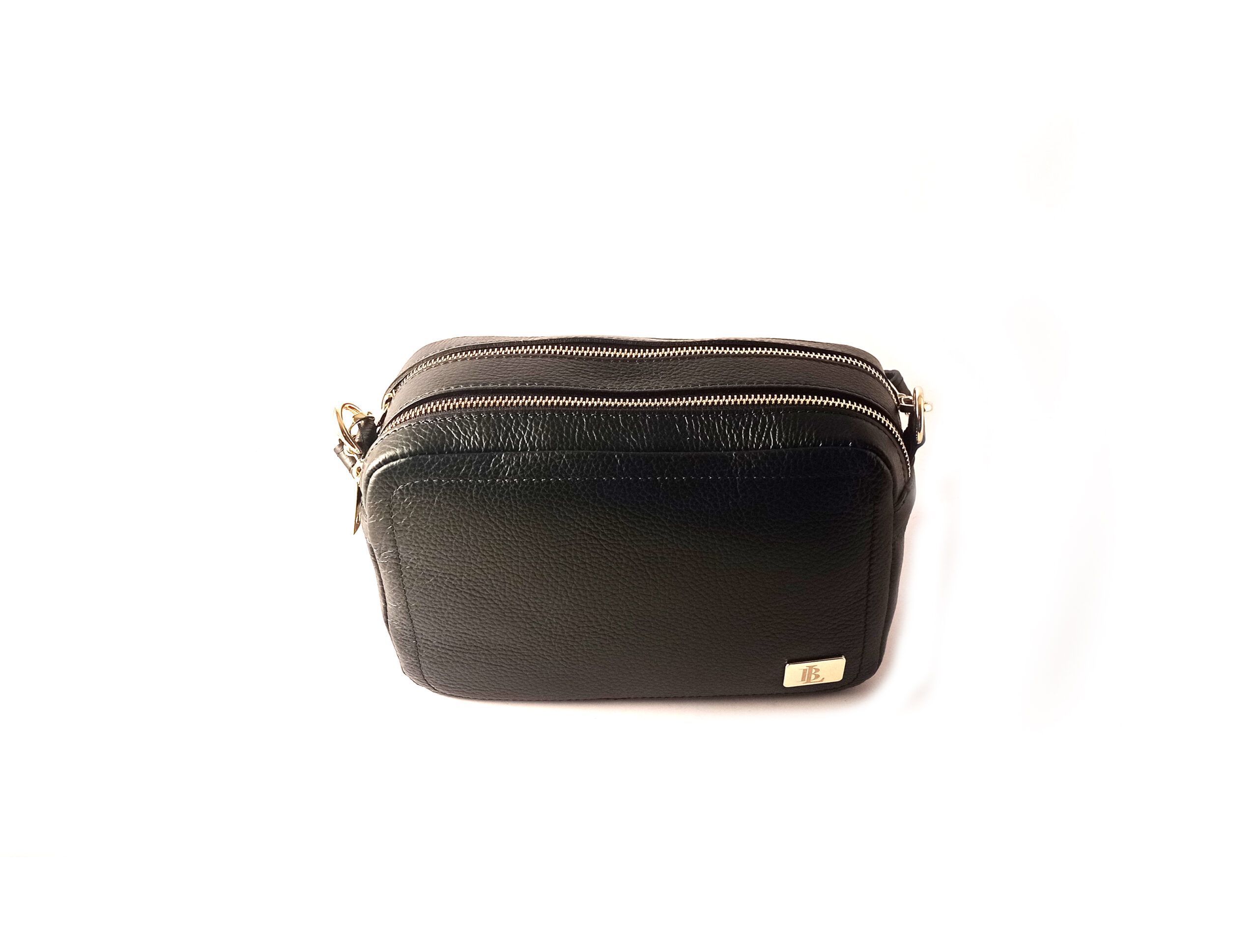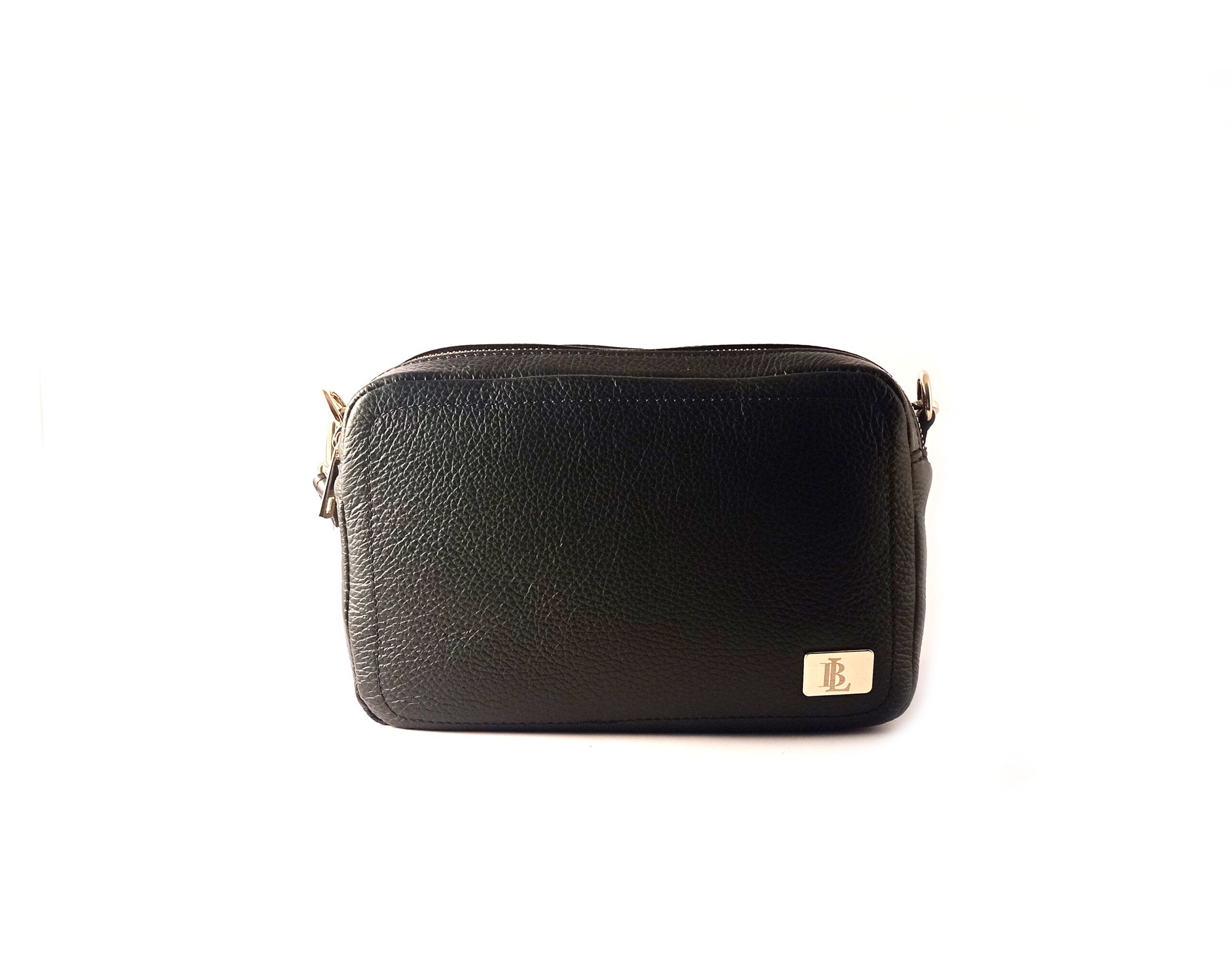 Bolso bandolera doble cremallera LB de piel legítima color negro.
