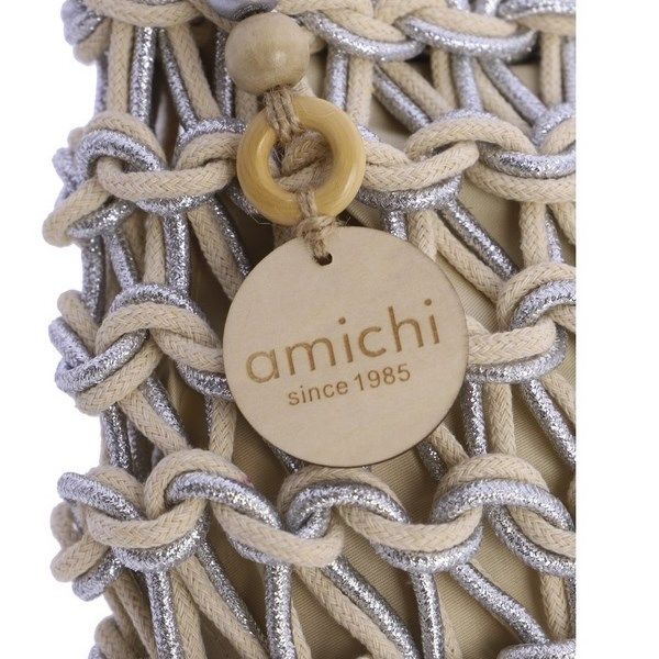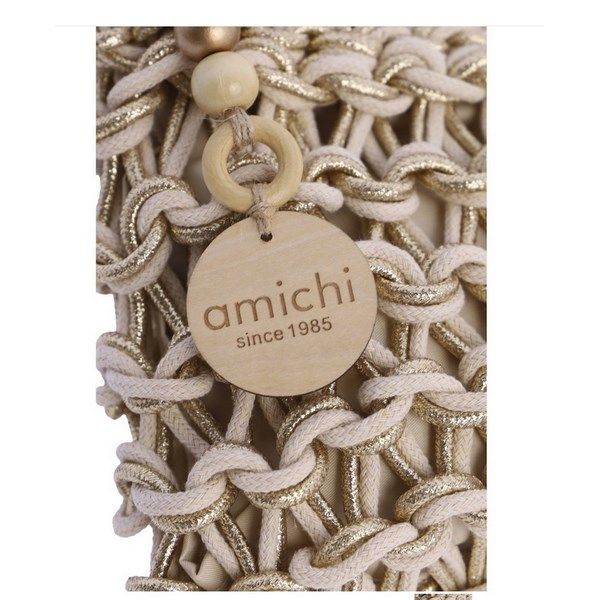 Bolso bandolera para mujer AMICHI Vela de cuerda. El asa de bandolera es de cuerda. Tiene cierre de cremallera con tirador de la marca metálico con logo. En su interior dispone de bolsillos para organizar tus objetos personales.