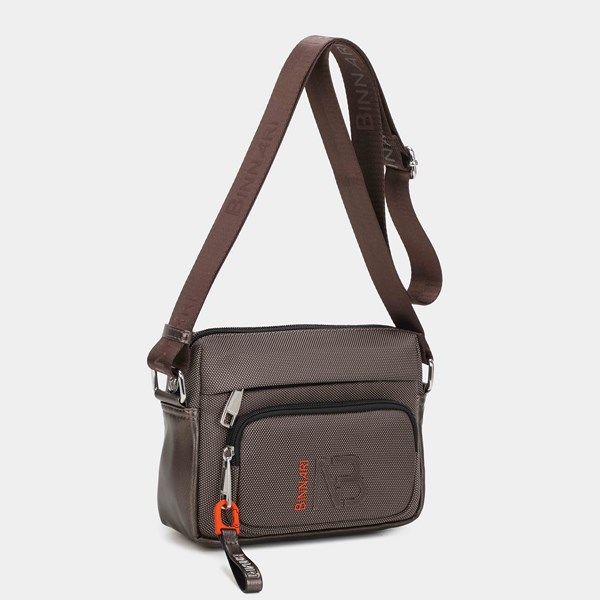 Bolso bandolera de la colección de Binnari modelo Emilie confeccionado en nylon cordura y de talles en pu de alta calidad. En la parte frontal hay dos bolsillos con cremallera, además de un tirador decorativo. Se accede a su interior por medio de una cremallera superior. En él, encontramos 3 bolsillos. Sus asas son ajustables para mayor comodidad. ¡Una bandolera súper versátil! Los detalles metálicos son de color nickel.