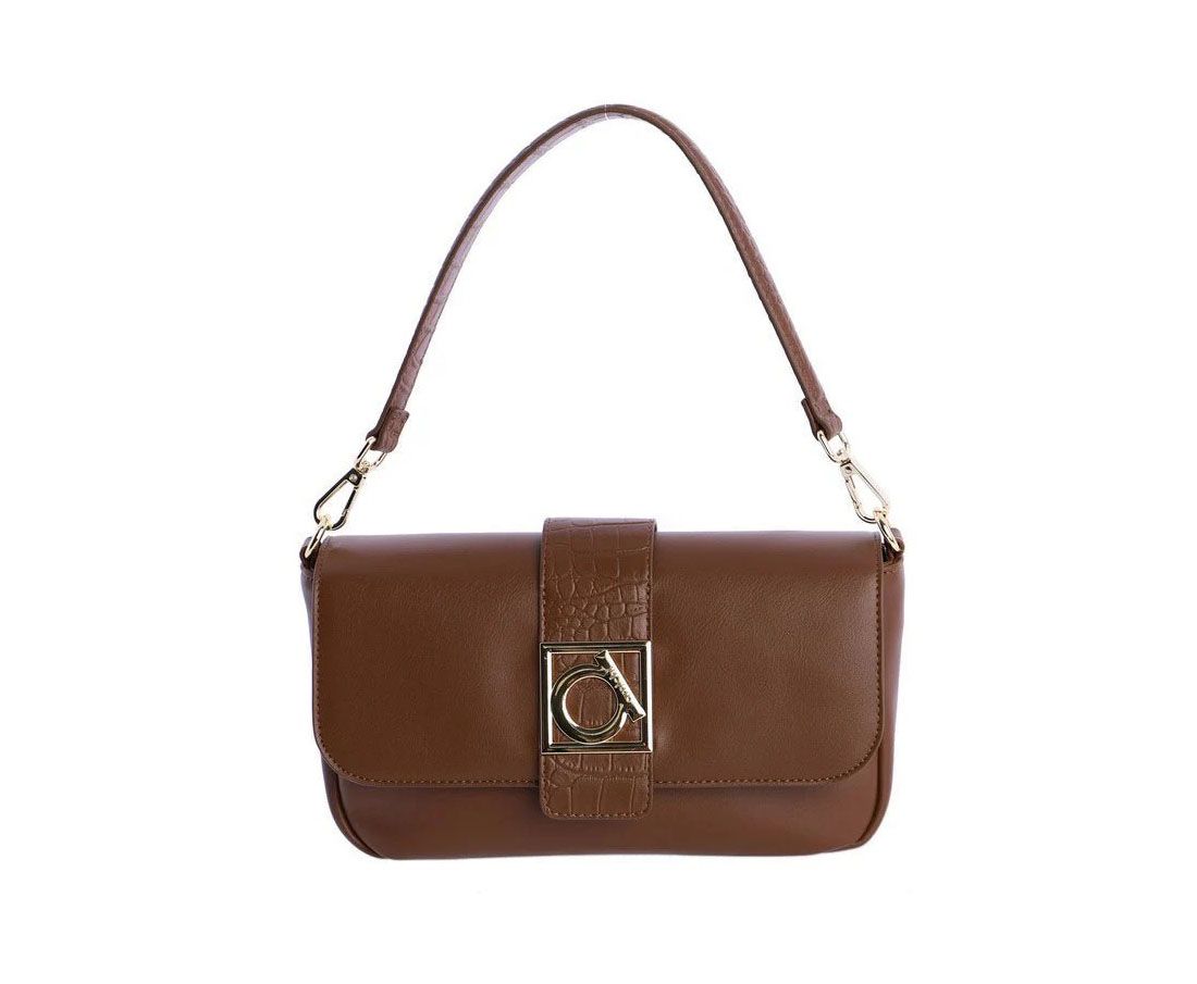 Bolso de hombro AMICHI Viena con solapa color marrón.
