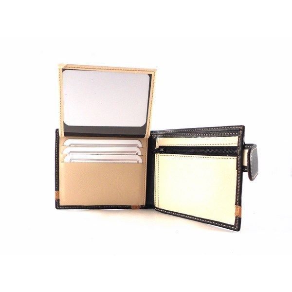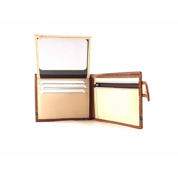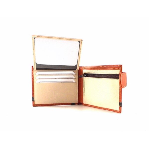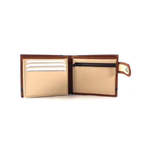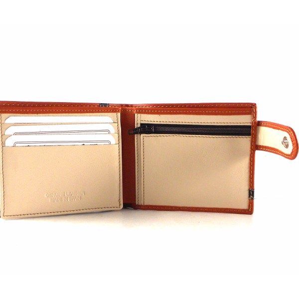 Cartera para hombre de tipo americana con cierre de broche exterior de la colección de Nilo. Piel vacuno natural hidratada y flexible. Doble billetero con 9 tarjeteros y monedero interior.