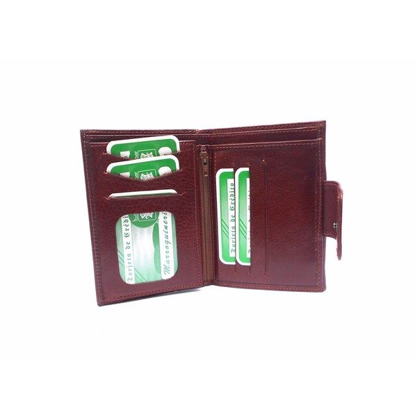 Cartera para mujer de la colección de Nilo. Billetera con 5 ranuras para tarjetas, 2 espacios de fundas, cremallera central y billetero. Monedero doble separado por cremallera central. Piel vacuno natural hidratada y flexible.
