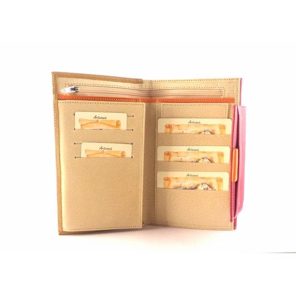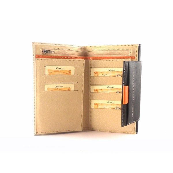 Cartera de tamaño mediano para mujer de la colección de Nilo. Billetera con 10 tarjeteros, 2 espacios de fundas y doble billetero, uno de ellos de cremallera. Monedero doble con bolsillo central de cremallera. Piel vacuno natural hidratada y flexible.