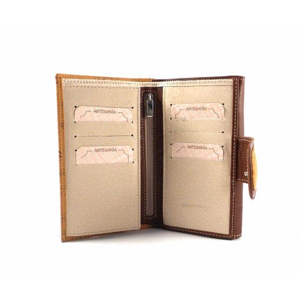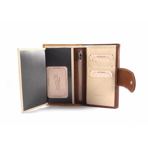 Cartera de la colección de Nilo en tamaño mediano. Piel vacuno natural , hidratada. Monedero doble separado por bolsillo con cremallera. Billetero con 10 tarjeteros, cremallera central y dos espacios de fundas.