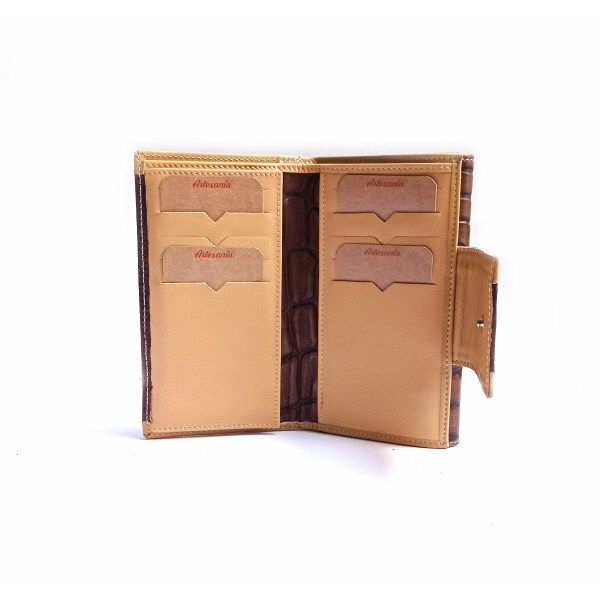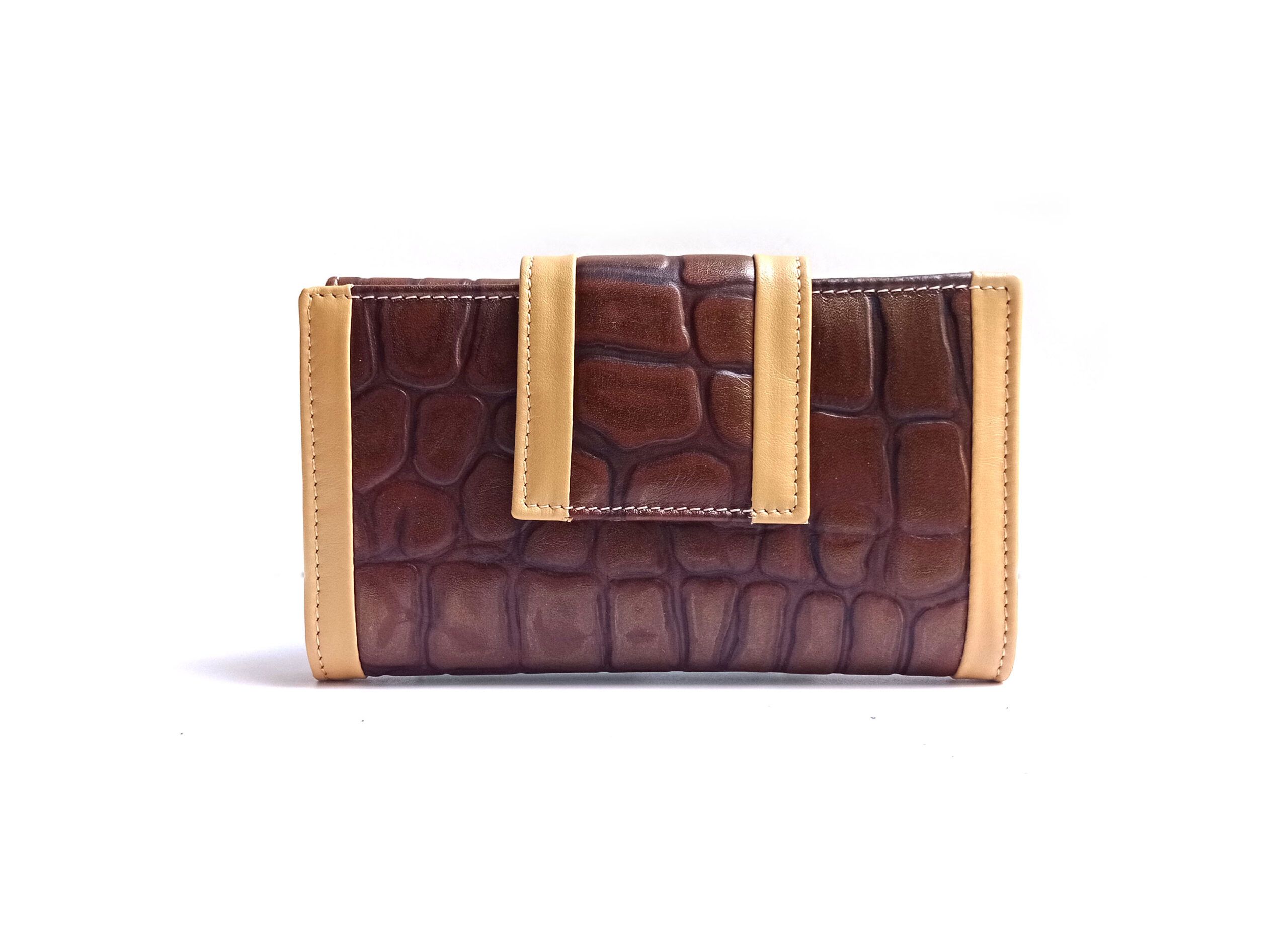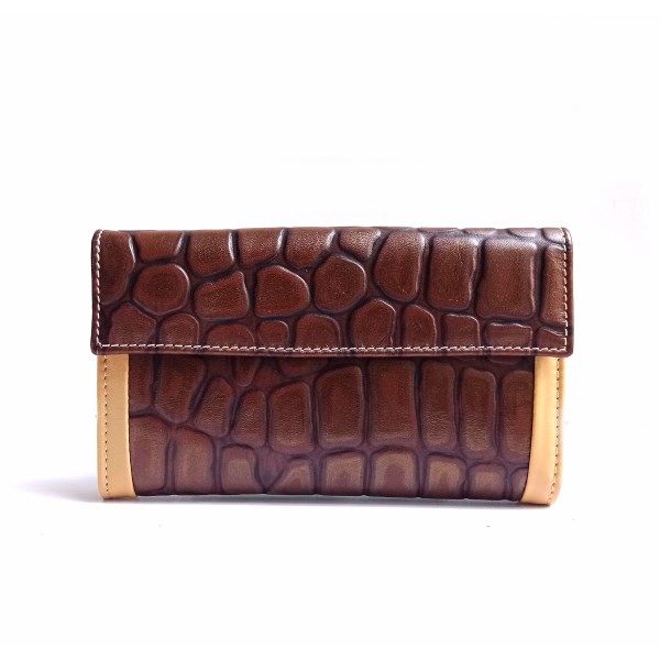 Cartera de piel mujer mediana NILO coco print marrón brillo de la colección de Marroquinería Nilo.