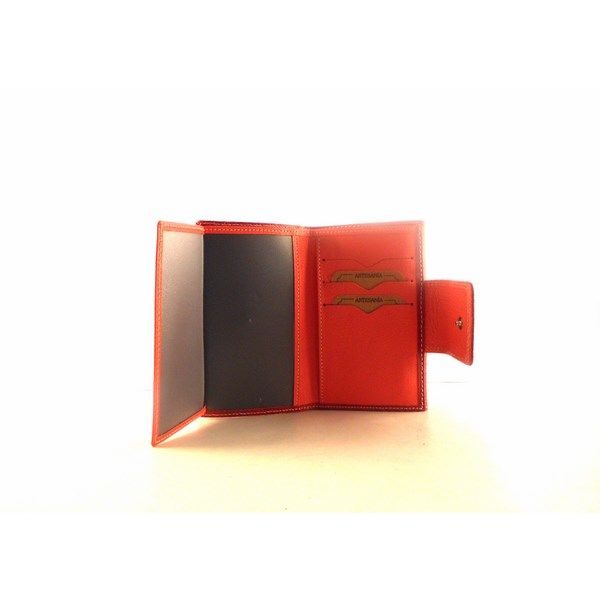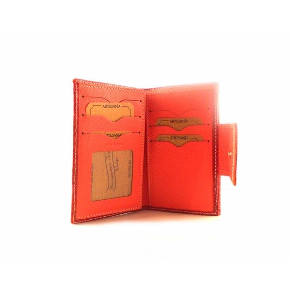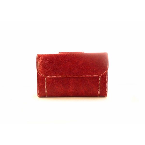 Cartera en piel de tamaño mediano en piel rota de primera calidad. Disponible en color rojo.