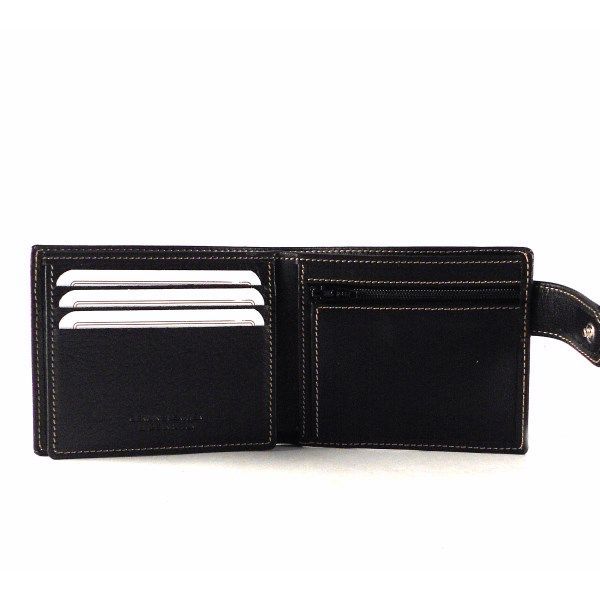 Cartera para hombre apaisada de la colección de Nilo. Piel vacuno natural hidratada y flexible. Monedero de cremallera interior. Doble billetero con 7 tarjeteros. Cierre exterior.