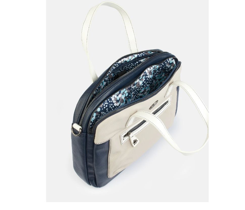 Cartera para documentos para mujer de la colección de Caminatta serie Mali. Cartera fabricada en material sintético de alta calidad con doble asa de hombro y bandolera para cruzar con un bolsillo exterior y uno trasero con cremallera exterio. Compartimentos principal con acolchado para proteger los dispositivos y bolsillo interior con cremallera y tipo de cierre con cremallera.