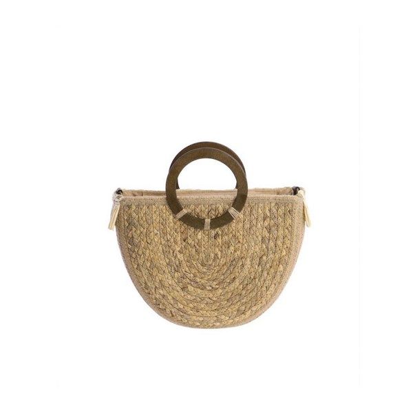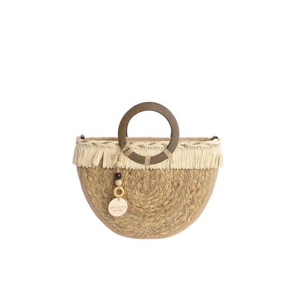 Cesta de mano de la colección de AMICHI. Cesta de mano con asas de madera. Cierre de cremallera. Bandolera opcional regulable.Forro textil.