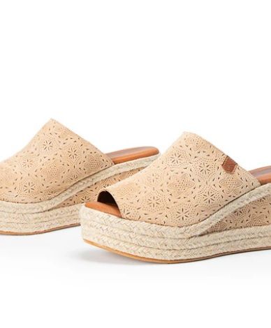 Cuña Baja Yute POPA Arenita Grabado Beige.