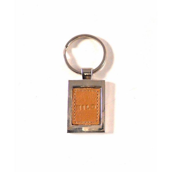 Llavero metálico de la colección de Nilo. Detalle delantero en piel vacuno.