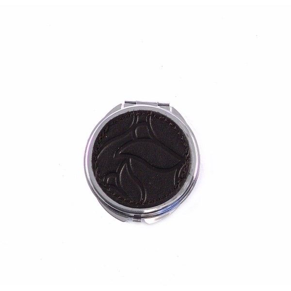 Mini espejo de piel para bolsillo color marrón o cuero.