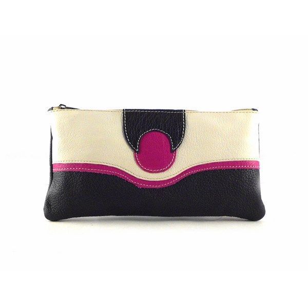 Monedero – neceser de piel con cremallera para bolso morado y blanco