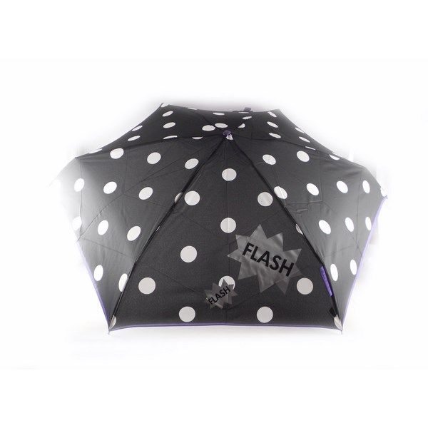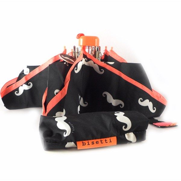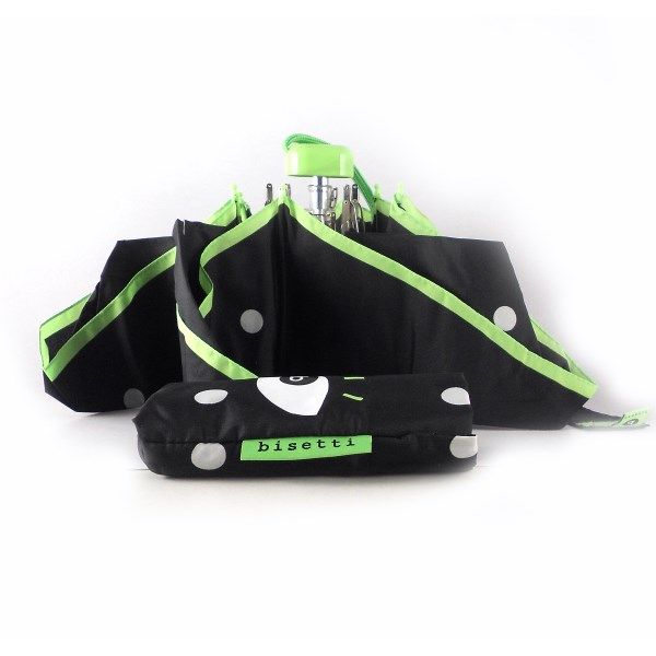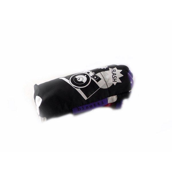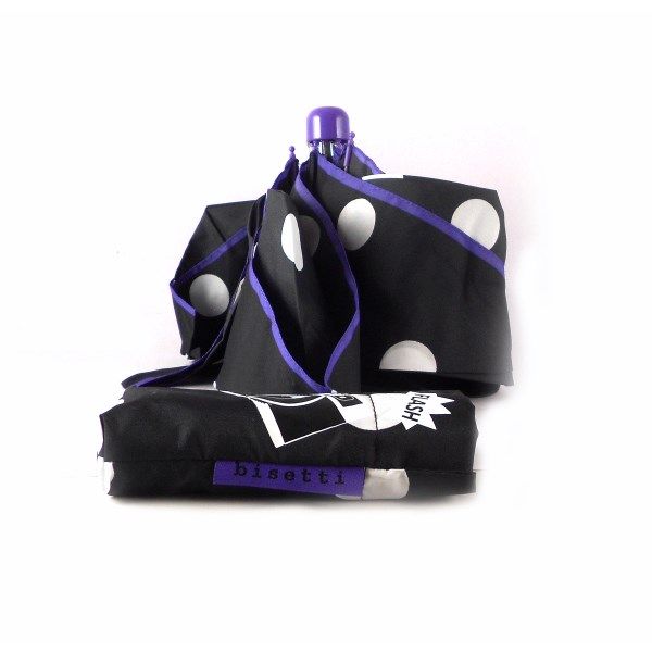 Paraguas plegable Bisetti con estampado color morado, naranja y verde. Paraguas con apertura manual.
