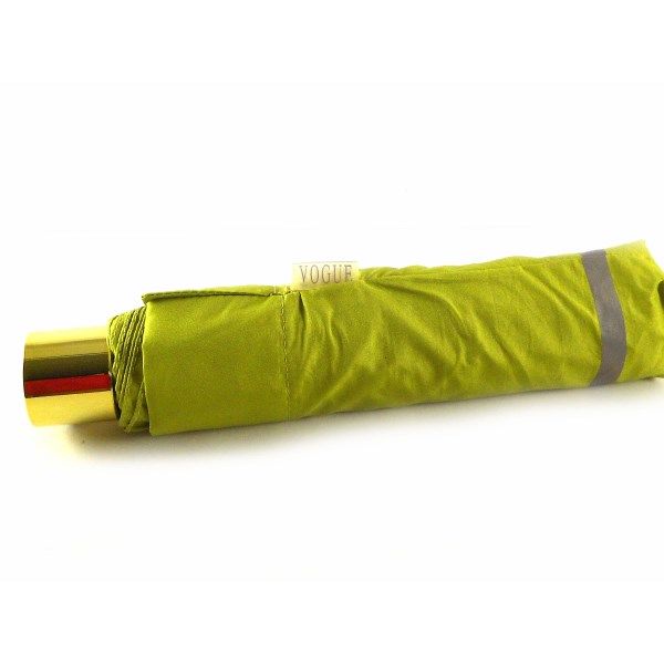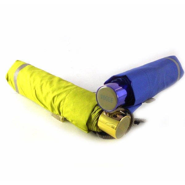 Paraguas plegable colección Vogue color verde y azul. Paraguas de hombre y mujer color verde y azul, tamaño pequeño, plegable con funda reflectante  y con mango moderno.