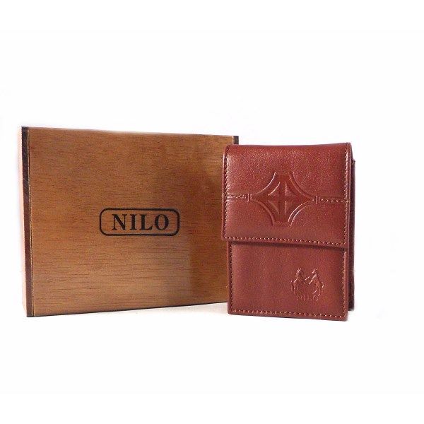 Pitillera piel Nilo con solapa y tarjetero en color cuero