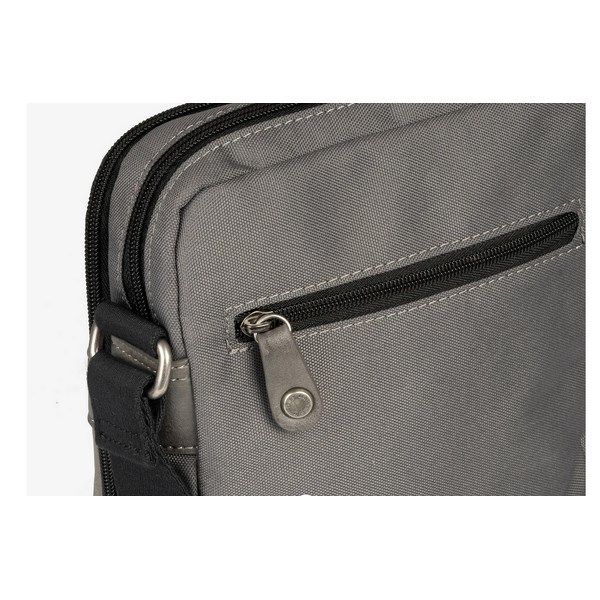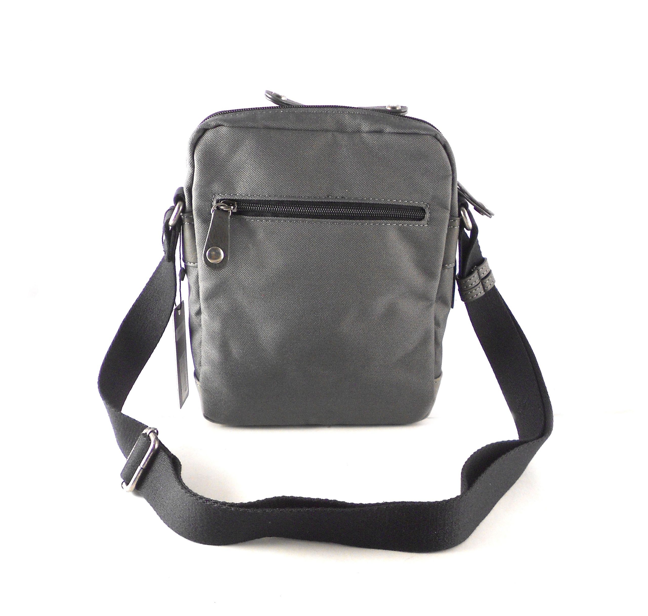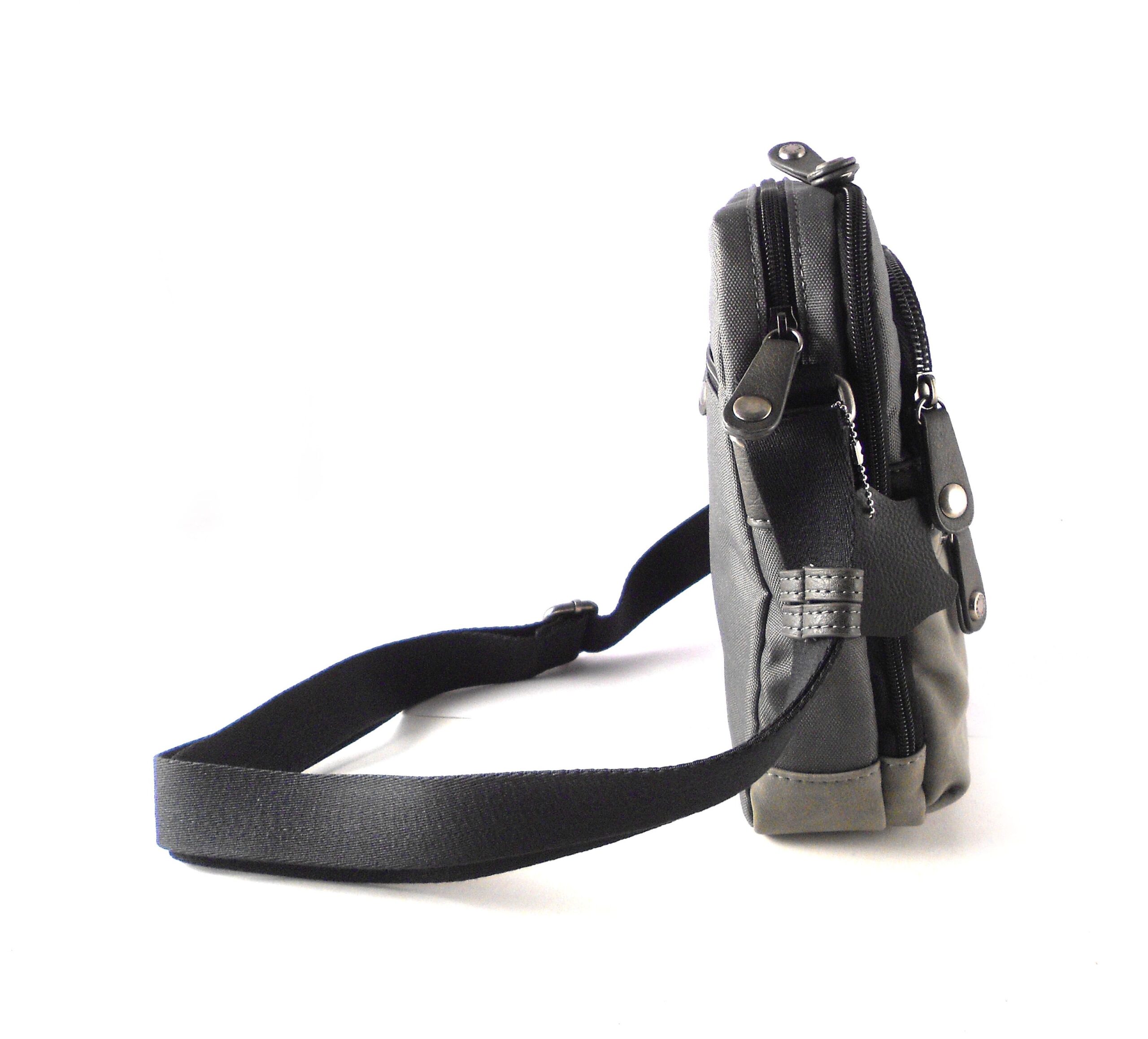 Bolso para hombre con cierres de cremalleras y bolsillos exteriores delanteros y trasero.