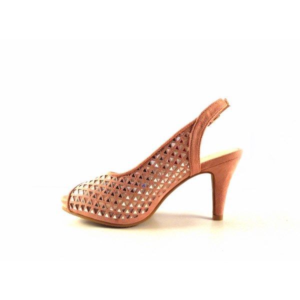 Sandalias de tacón Prestigio peep toe rosa salmón para mujer.