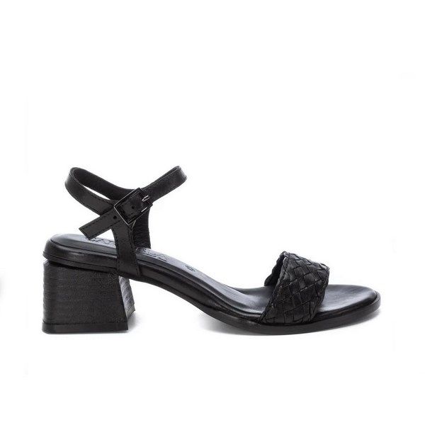 Sandalias de mujer de la marca Carmela. Sandalias fabricadas en piel de alta calidad. Modelo de pala fina trenzada. Cierre con hebilla en pulsera. Cómodo tacón ancho de 6 cm, suela de goma antideslizante.