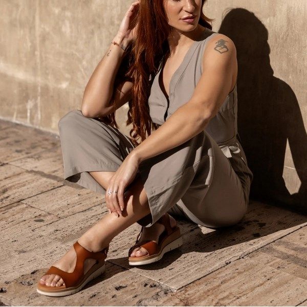 Sandalias para mujer con una cuña media color avellana de la colección de Marila Shoes modelo Allen fabricadas en piel vaquetilla color avellana.