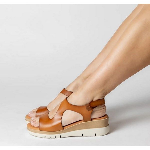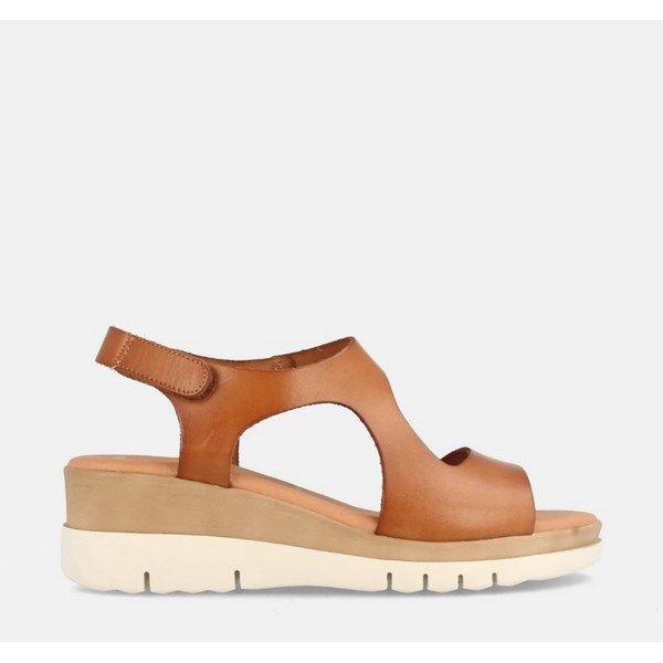 Sandalias para mujer de piel con cuña media Marila Shoes Allen avellana.