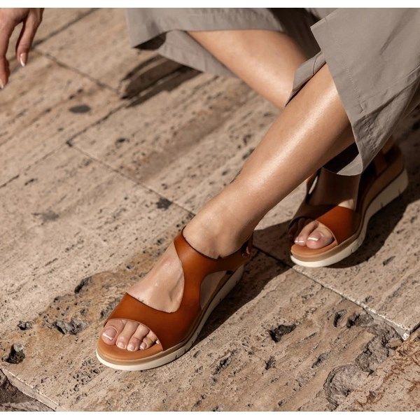 Sandalias para mujer de piel con cuña media Marila Shoes Allen avellana de la colección primavera/verano de la marca.