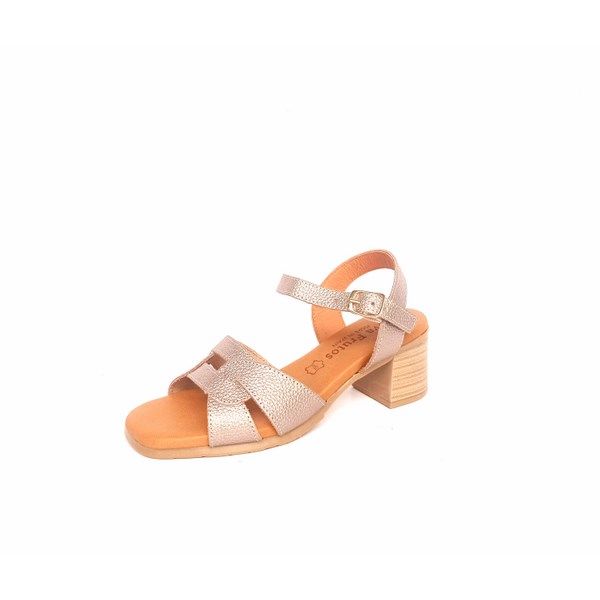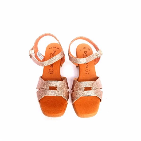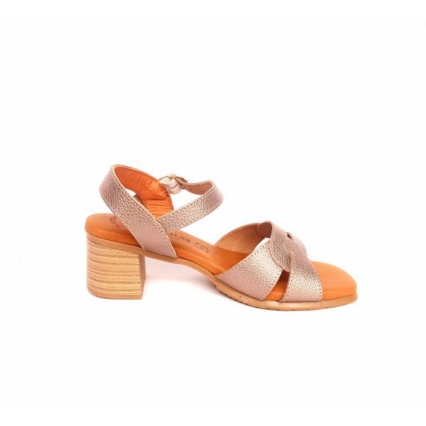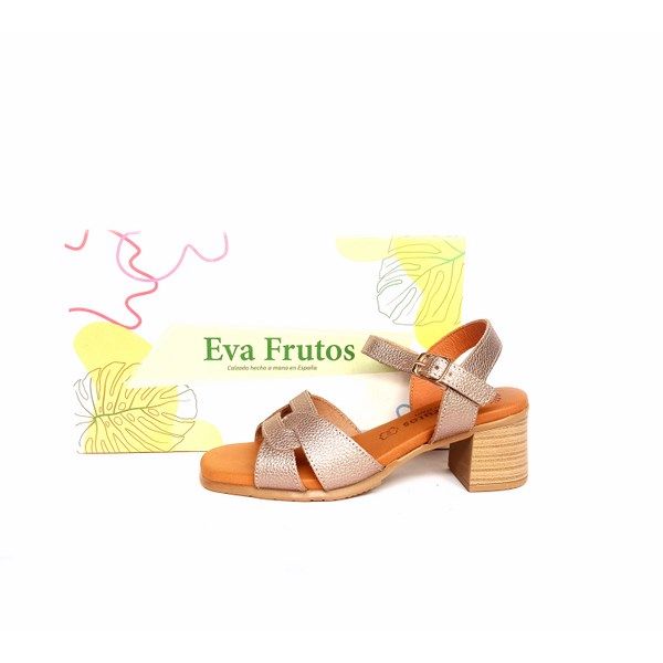 Sandalias de tacón medio para mujer de la colección de Eva Frutos. Sandalias fabricadas en piel suave hidratada muy adaptable y flexible. Sandalias de tacón medio de 6 cm con piso de 1,5 cm. Planta acolchada en piel y suela engomada antideslizante. Cierre de hebilla al tobillo.