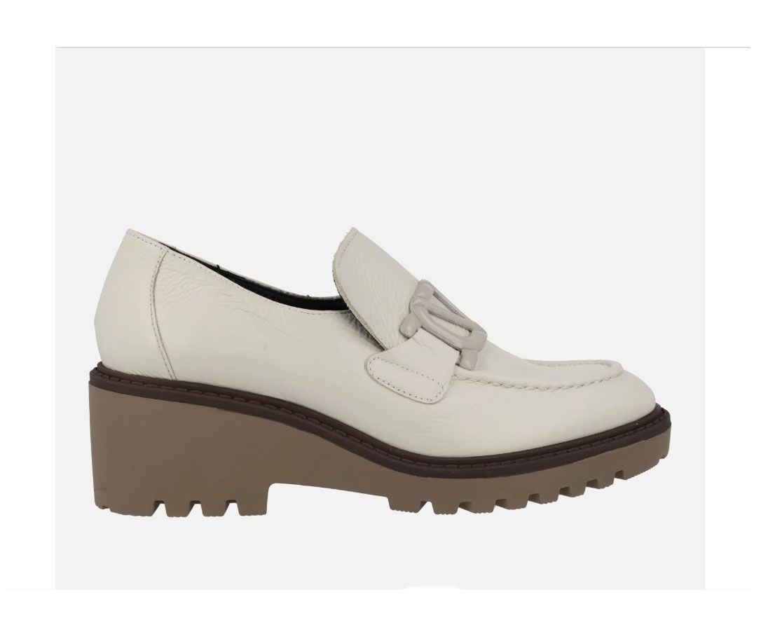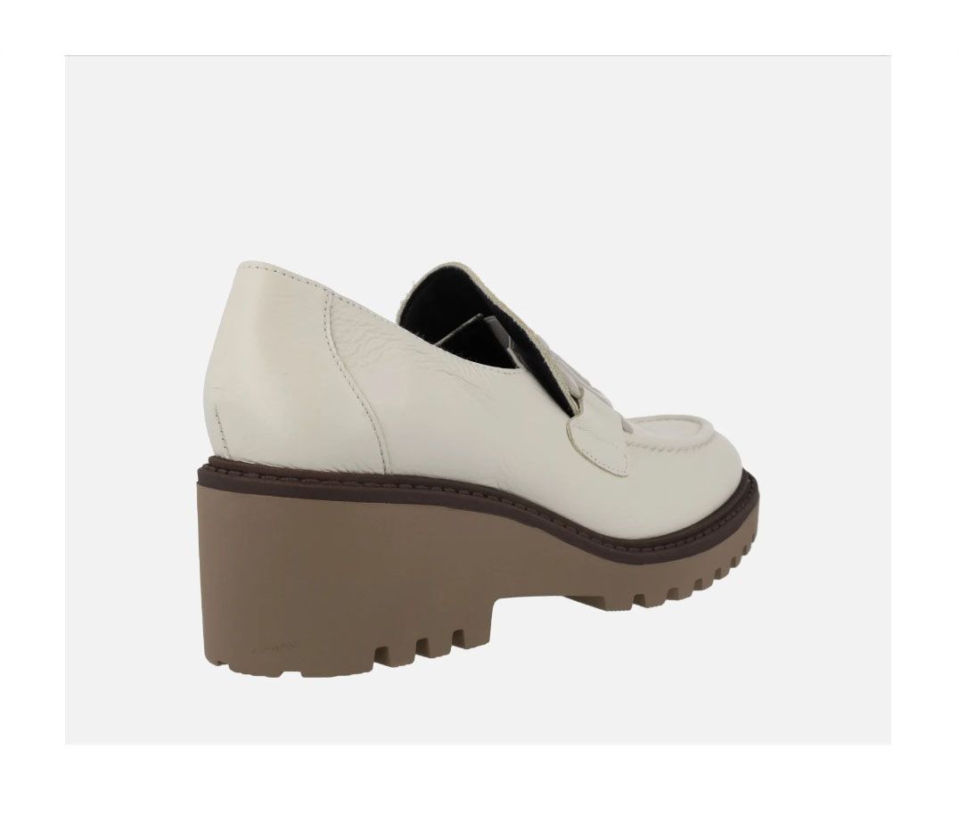 Zapatos para mujer de la colección de Viguera. Zapatos en piel vacuno natural, hidratada y flexible. Muy ligeros y ergonómicos. Planta acolchada. Cuña engomada ligera de 6 cm con piso de 2 cm dentado. Detalle de adorno delantero al tono. Gomas laterales en empeine para facilidad en el calce.