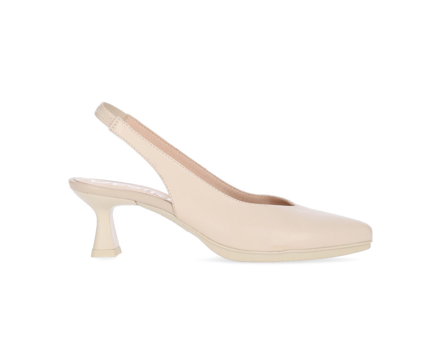 Zapatos de salón destalonados de la colección de Desireé Shoes modelo Maia1 Diana en color crema. Zapatos de punta fina con tacón de 4,5 cm. Fabricados en piel vacuno de alta calidad muy flexible y suave. Planta acolchada y suela engomada con sistema total flex. Elástico trasero para mejor sujección. Zapatos muy ligeros y ergonómicos. Calidad 100% del calzado español.